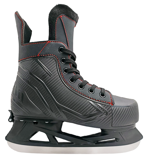 Hockey Boot: Size adjustable with reinforced moulded construction/ Hockey Blade: High impact Polypropylene holder with stainless steel runner/ Sizes: 31-34, 35-38, 39-42/ MOQ: 1,000prs